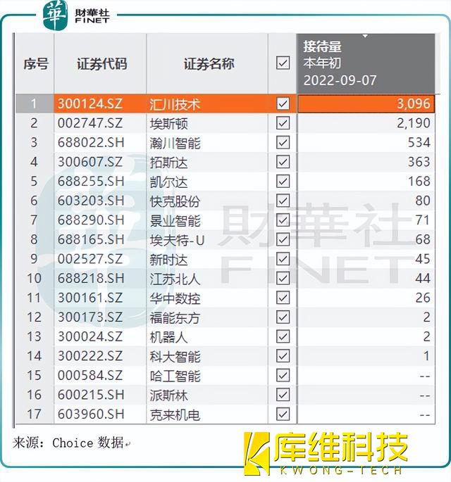 从今年初至今的机构调研情况来看,工业机器人赛道个股受机构明显关注,其中汇川技术(300124.SZ)和埃斯顿(002747.SZ)的接待量排名前两位。