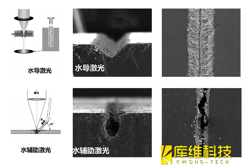 水导激光加工技术:水导激光与水辅助激光切割硅片对比