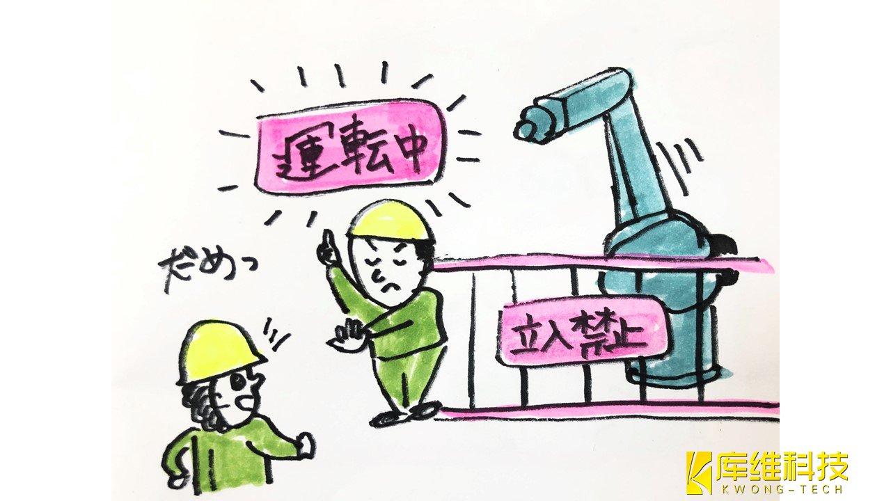 在操作工业机器人时(除了在教学等工业机器人驾驶过程中),如果工人接触到工业机器人,可能会有危险。在这种情况下,必 须采取必要的措施来防止危险,例如提供围栏或围墙。