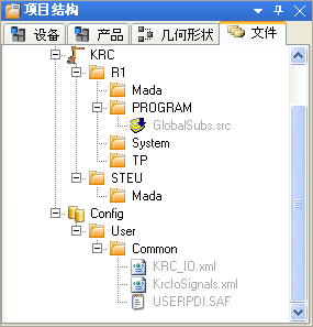 7. 从机器人控制系统传输到 WorkVisual 的文件:黑色项目浏览器
