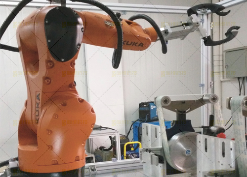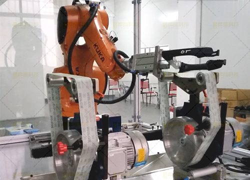 针对小型的五金件(如把手),利用机器人带夹持工具对五金铸件的毛刺飞边的打磨和抛光而专门设计的产品。该单元主要由机器人及砂带机和抛光机构成 ,转台进行变位协同及工件装卸,全自动化完成产品的打磨抛光过程